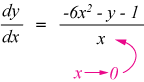 $$\frac{dy}{dx} = \frac{-6x^2 - y - 1}{x}$$