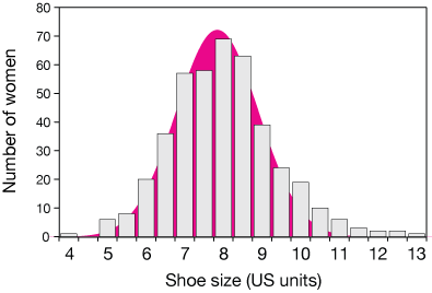 Distributions of many variable or random error in measurements are very nearly Normal – by which we mean distributed according to the Gaussian or normal distribution function. Measurements of lengths or heights, test scores or IQ scores, and shoe size are just a few examples. Here are bar-chart representations of a couple of these